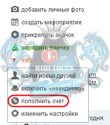 Մուտք ենք գործում օդնոկլասնիկիի մեր էջը և սեղմում пополнить счет